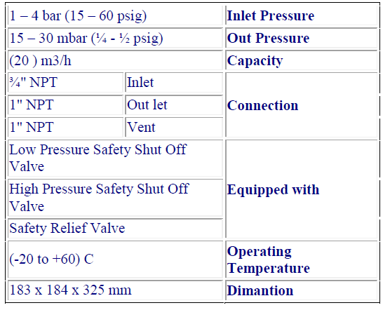 در صورت به حداقل رسیدن فشار گاز در ورودی ظرفیت گاز دهی رگلاتور کاهش نمی یابد.