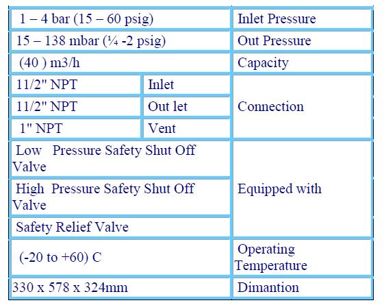 در صورت به حداقل رسیدن فشار گاز در ورودی ظرفیت گاز دهی رگلاتور کاهش نمی یابد.