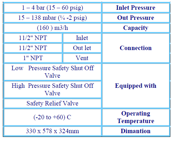 در صورت به حداقل رسیدن فشار گاز در ورودی ظرفیت گاز دهی رگلاتور کاهش نمی یابد.