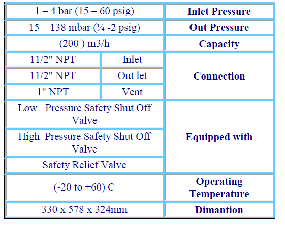 در صورت به حداقل رسیدن فشار گاز در ورودی ظرفیت گاز دهی رگلاتور کاهش نمی یابد.