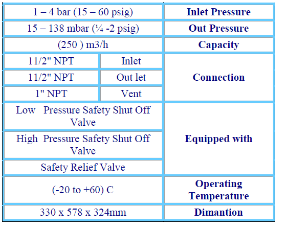 در صورت به حداقل رسیدن فشار گاز در ورودی ظرفیت گاز دهی رگلاتور کاهش نمی یابد.