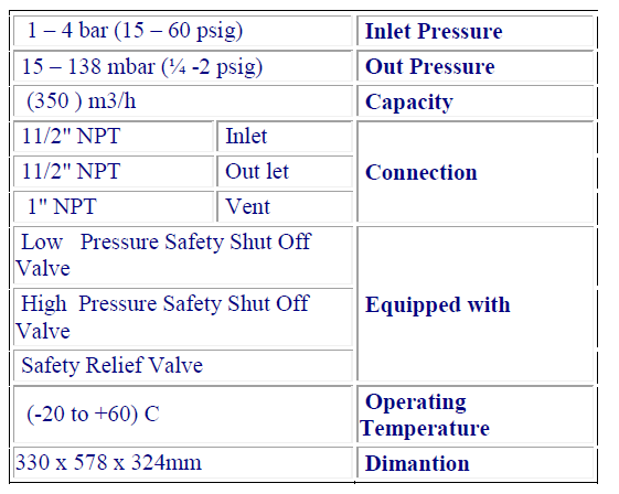در صورت به حداقل رسیدن فشار گاز در ورودی ظرفیت گاز دهی رگلاتور کاهش نمی یابد.