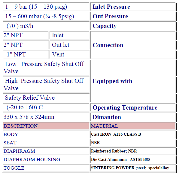 رگلاتور گازسوزان قابلیت استفاده در فشار ها ورودی 1 تا 9 بار و تنظیم در فشا خروجی مختلف بنا به سفارش مشتری را دارد.