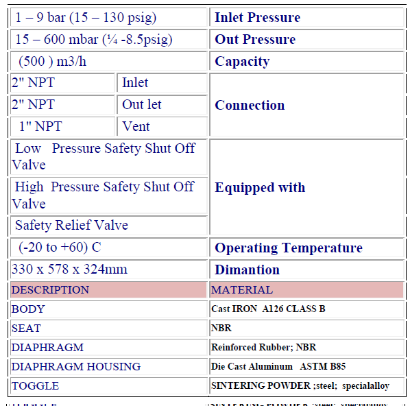 در صورت به حداقل رسیدن فشار گاز در ورودی ظرفیت گاز دهی رگلاتور کاهش نمی یابد.