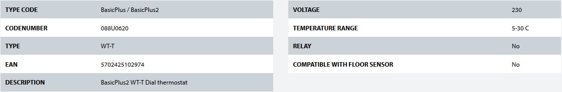 ترموستات اتاقی دانفوس DANFOSS مدل WT-T سری Basic Plus یک ترموستات آنالوگ 'گرمایش از کف است. دو متغیر اصلی زیر در ترموستات وجود دارد: